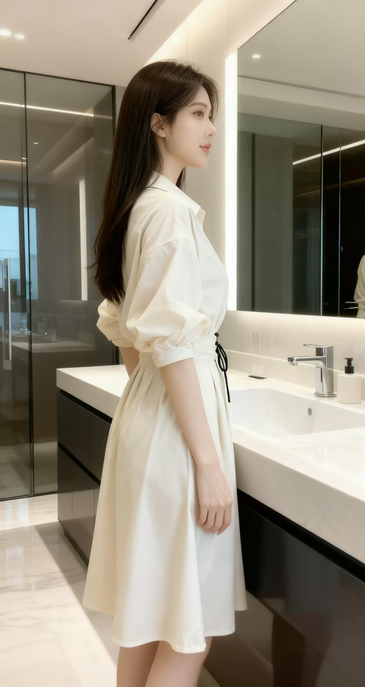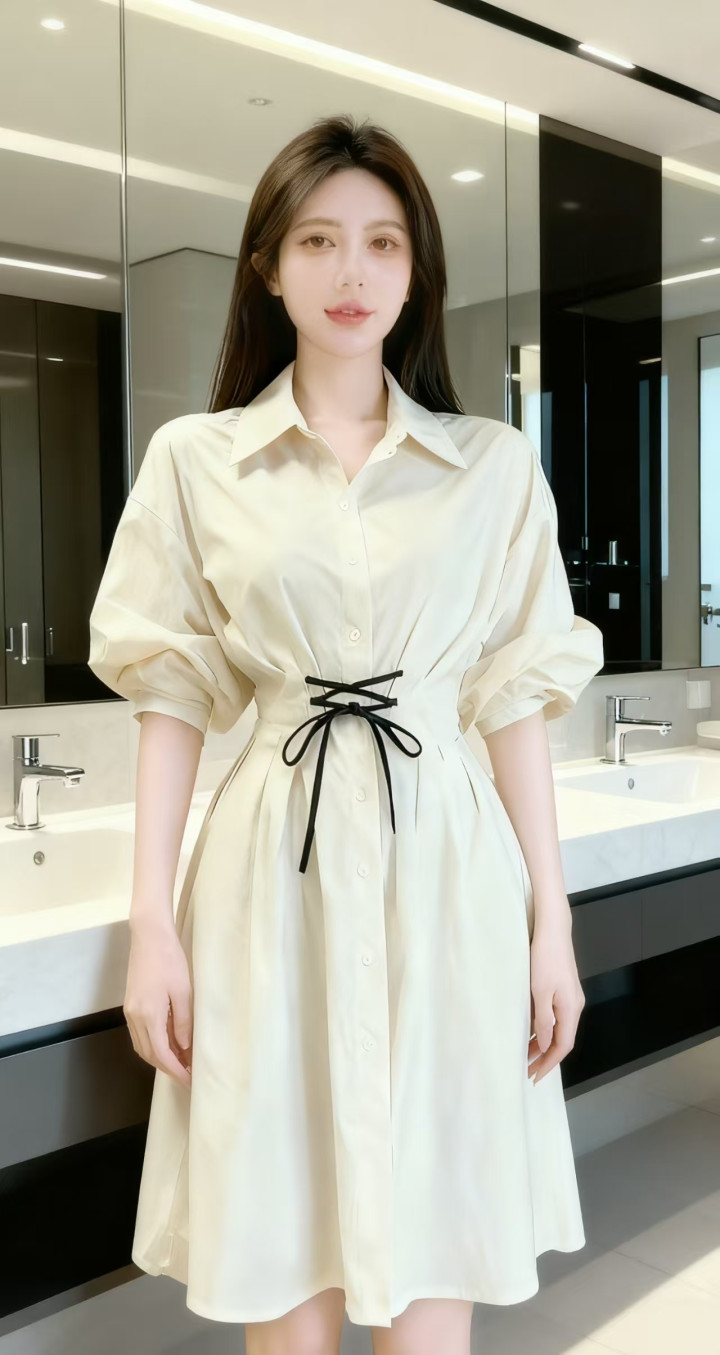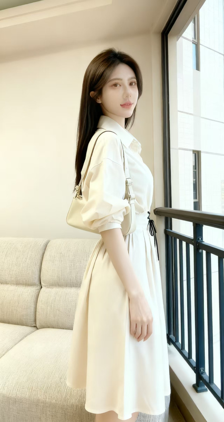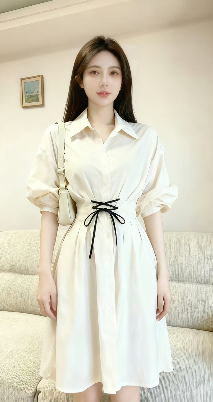 简约白衬衫款式连衣裙, 适合都市商务通勤穿搭